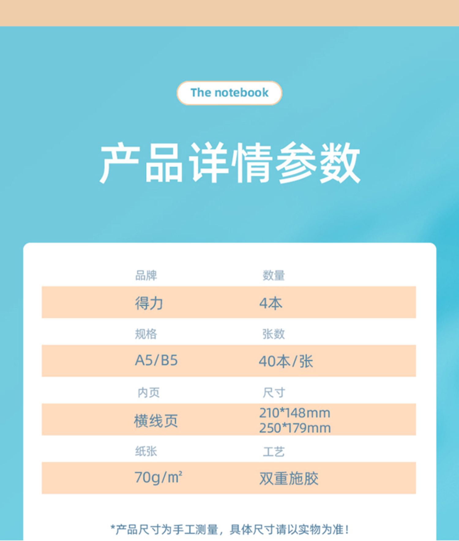 封面材质:其他/other生产企业:得力集团有限公司幅面:A5
